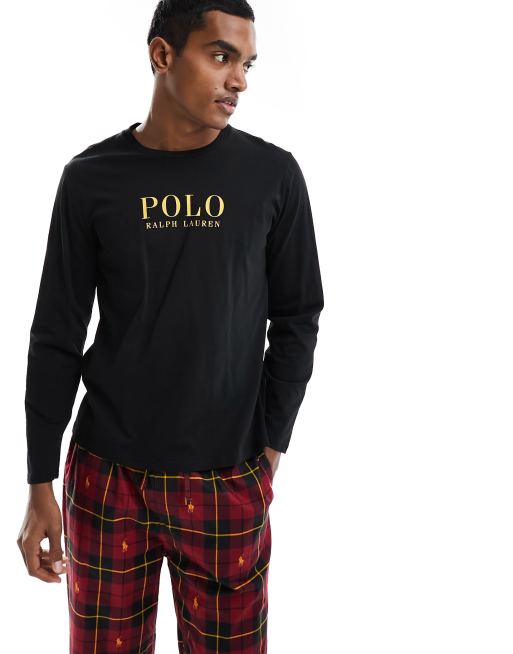 Polo Ralph Lauren lounge pyjama set with check trousers and long sleeve t shirt in black