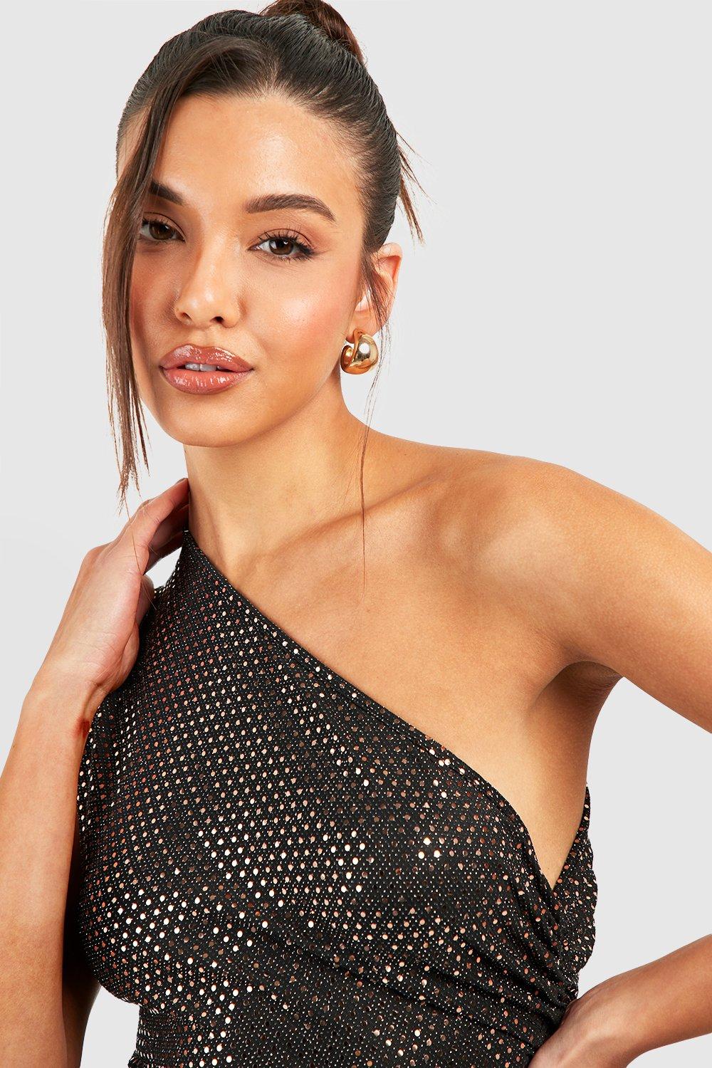 Rose gold black dress clearance, Women s Sequin Asymmetric Rouched Maxi Dress Boohoo UK clearance