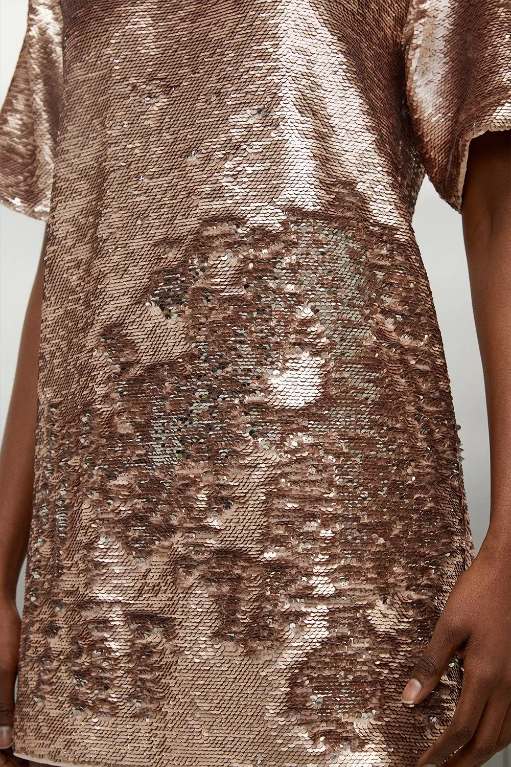 KAREN MILLEN Sequin Woven Boxy T Shirt Mini Dress in Rose Gold