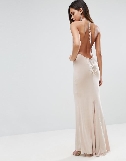 ASOS Slinky Halter Embellished Ruched Back Maxi Dress