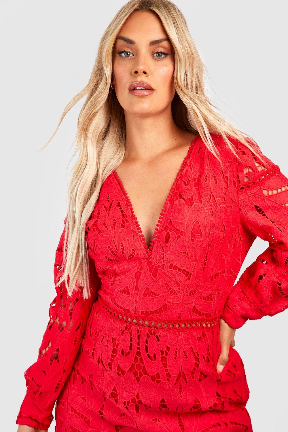 Plus Lace Ruffle Hem Shift Dress