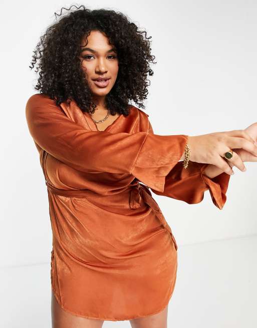 Rust Satin Ruched Side Slip Mini Dress Maeve