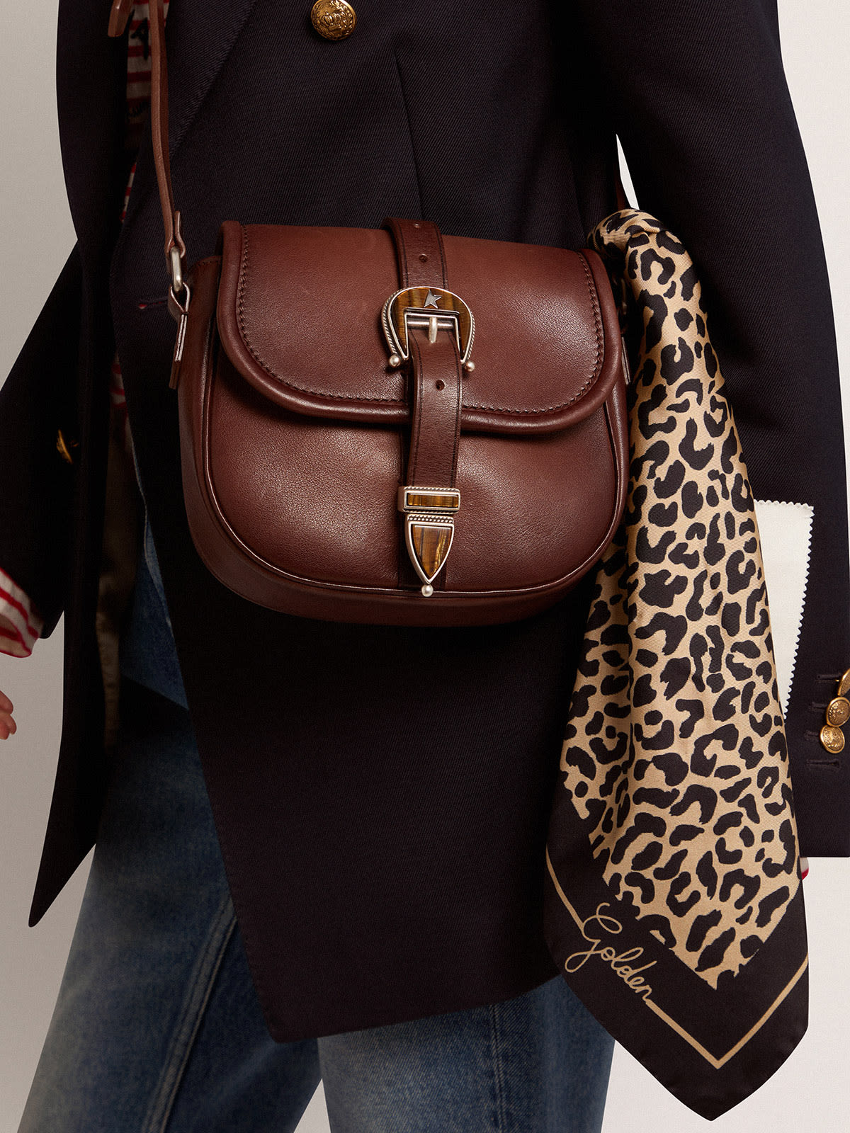 Petit sac Rodeo Bag femme en cuir marron fonc Golden Goose