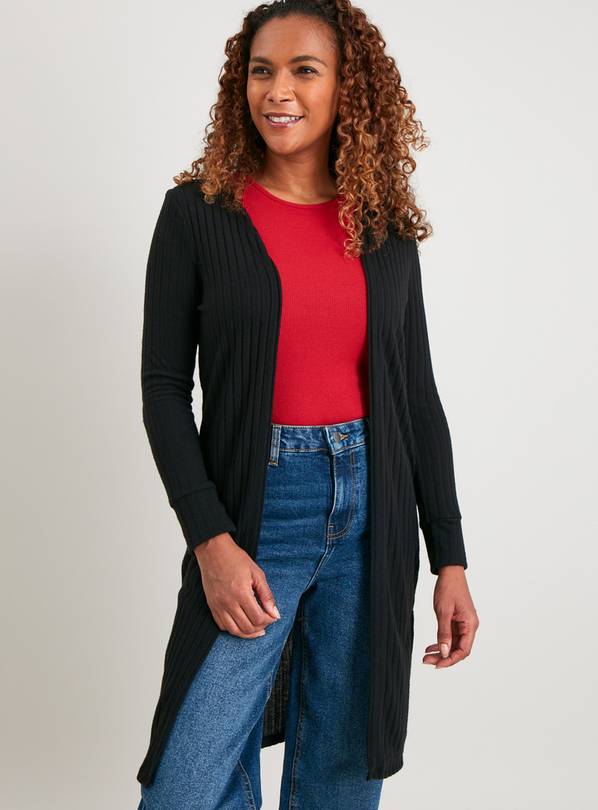 Buy Black Ribbed Knit Longline Cardigan 18 Cardigans Tu