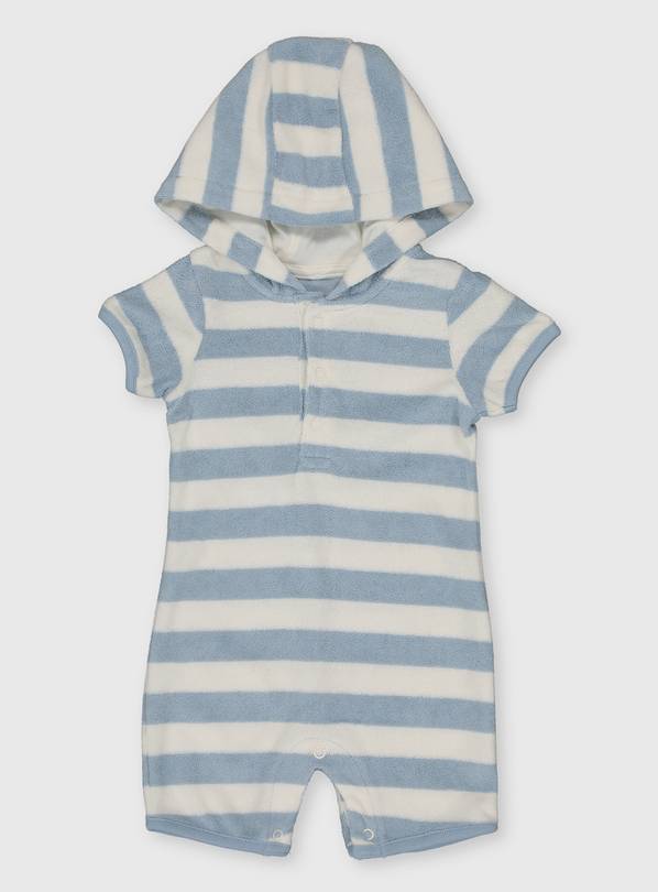 Buy Blue Stripe Hooded Towelling Romper 18 24 months All in ones and rompers Tu