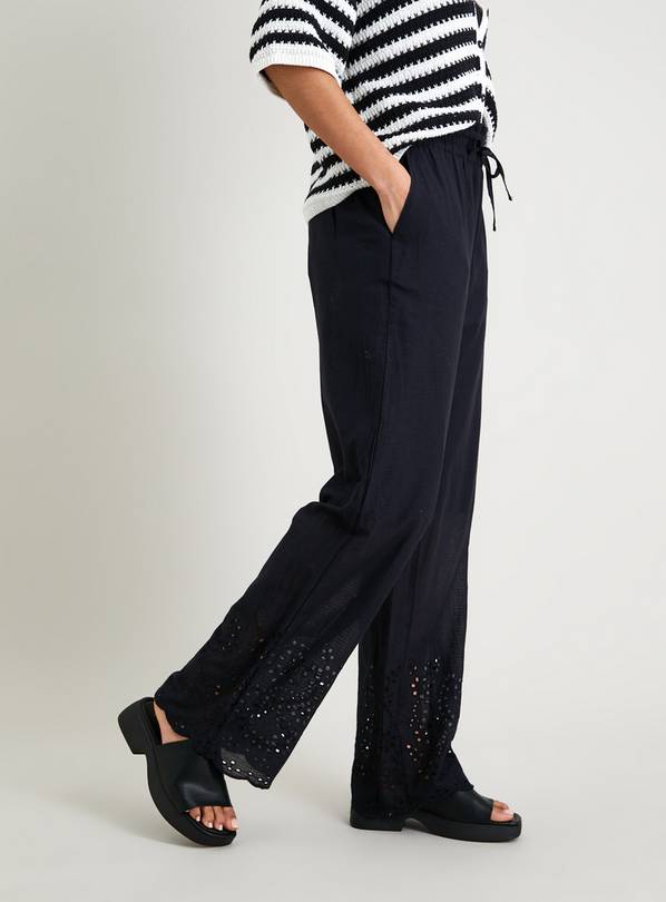 Buy Black Broderie Hem Wide Leg Trousers 24 Trousers Tu