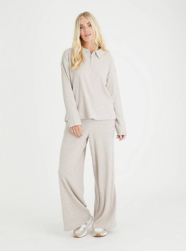 Buy Neutral Ribbed Soft Touch Wide Leg Coord Trousers 24 Joggers