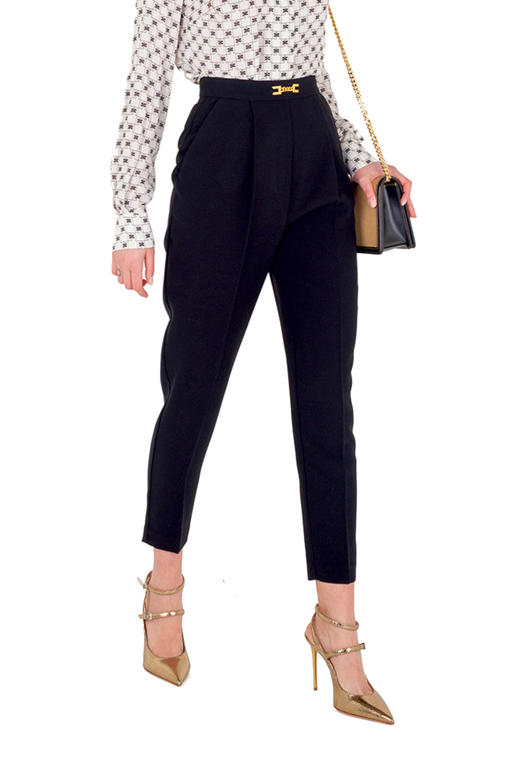 Elisabetta Franchi Essential Black Crepe Trousers with Logo at the