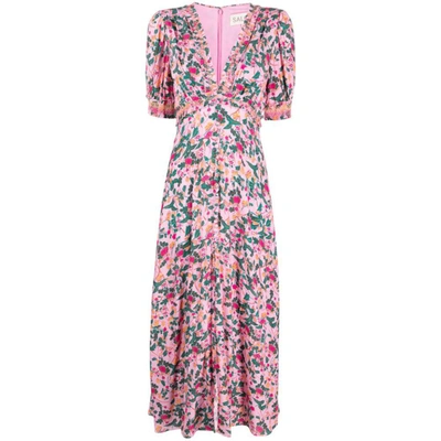 Saloni Isa Ruffled Floral print Silk georgette Midi Dress Pink