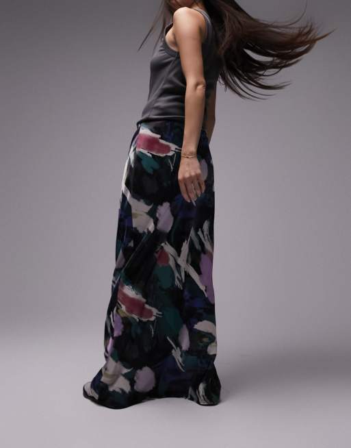 Topshop 80s graffiti print satin bias maxi skirt in multi