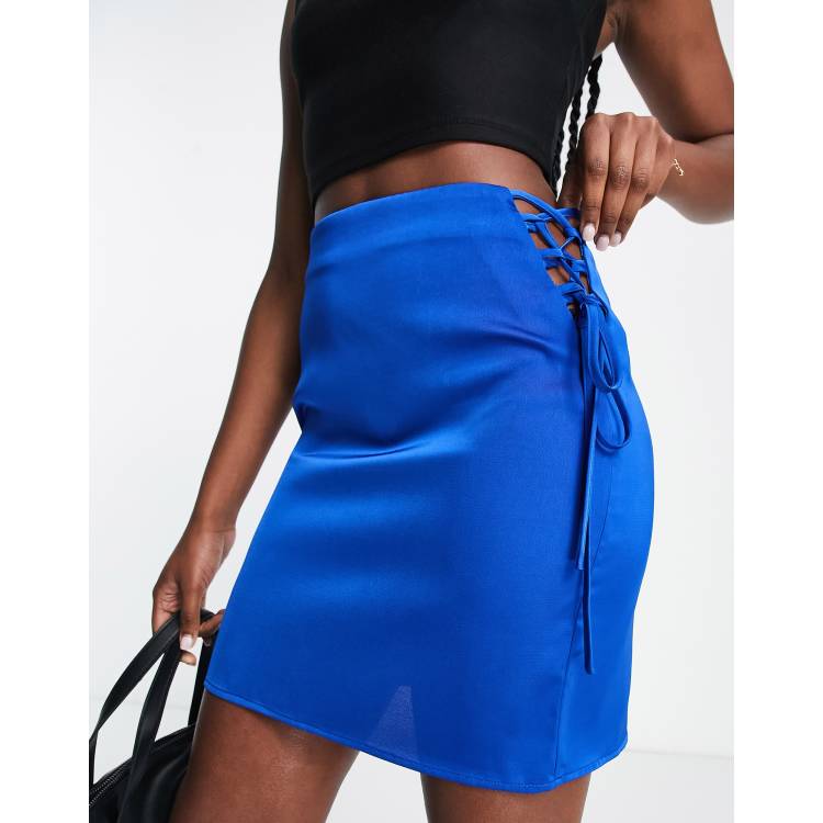 Lola May satin mini skirt with lace up side in cobalt blue ASOS