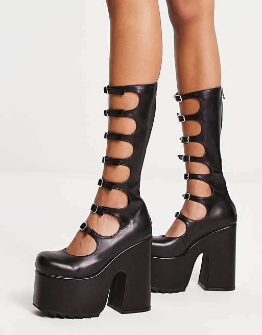 Lamoda Scarpe nere alte sulla gamba con tacco e fibbie In esclusiva per ASOS