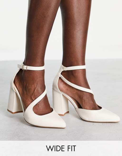 Scarpe bianche tacco largo clearance, London Rebel Scarpe a pianta larga a punta bianche con tacco clearance