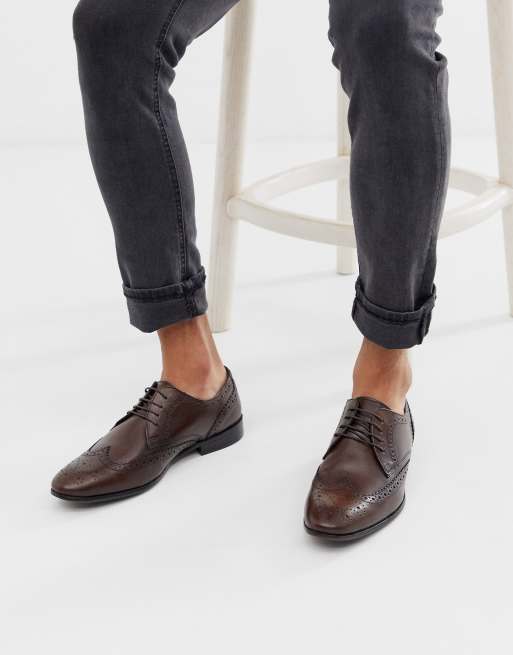 WALK London Samuel Scarpe stringate marroni con incisioni ASOS
