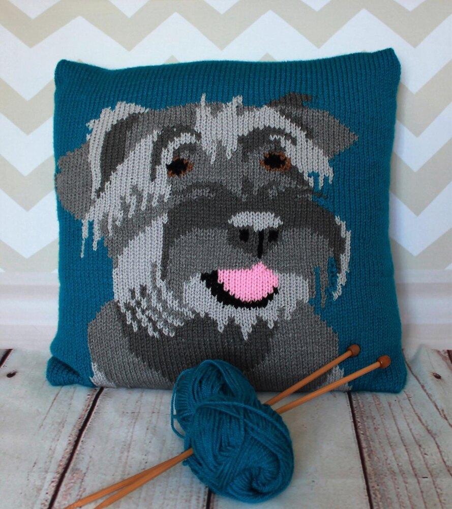 Miniature Schnauzer Cushion Cover Knitting pattern by Ruby and the