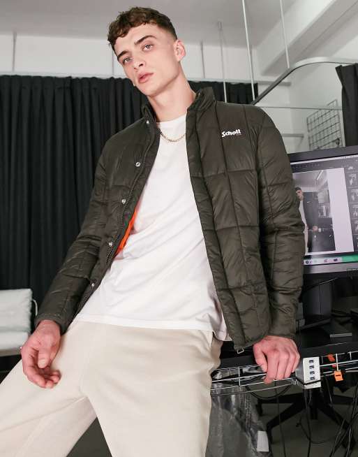 Schott Alabama lightweight square quilt puffer jacket in green ASOS