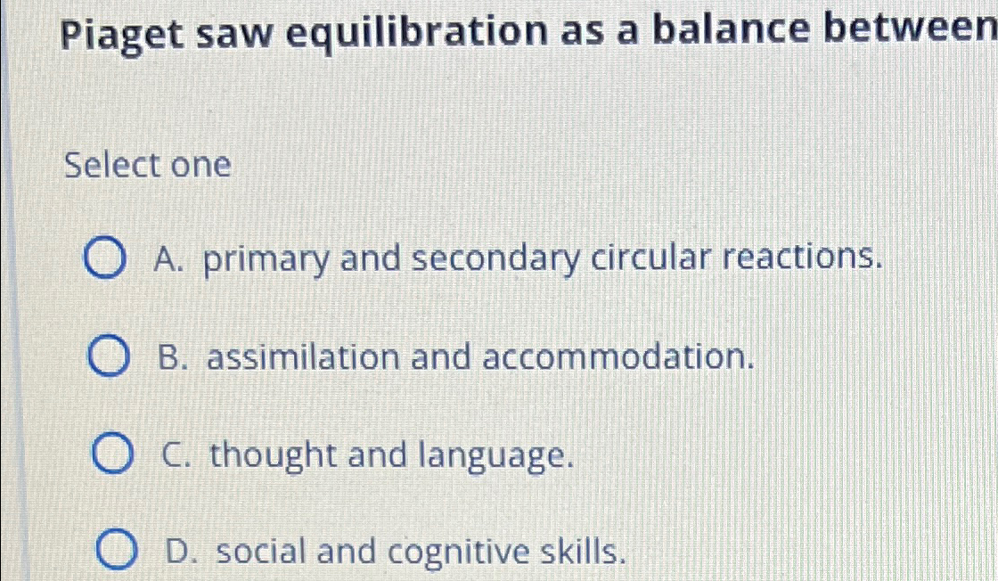 Solved Piaget saw equilibration as a balance betweenSelect Chegg