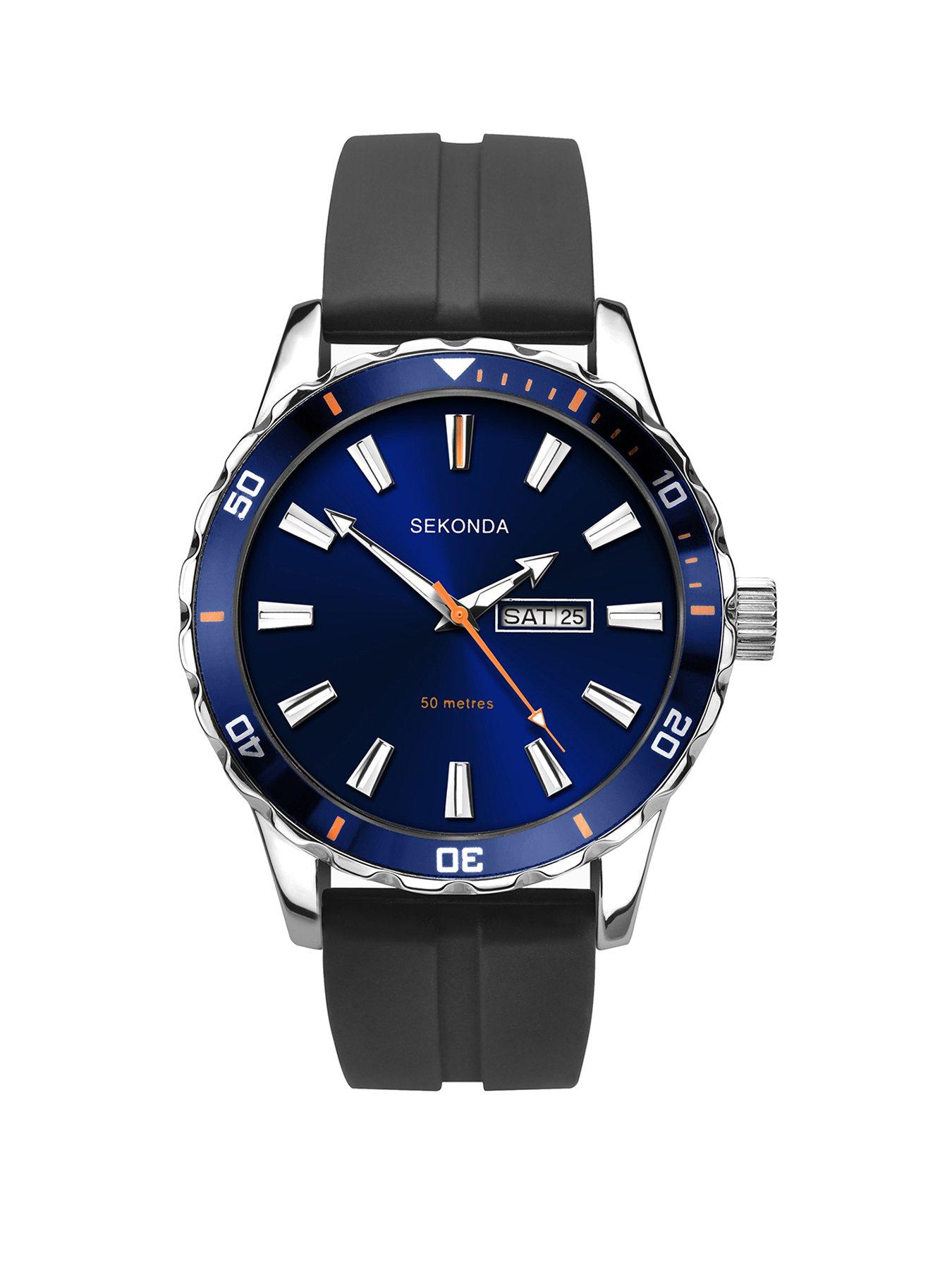 Sekonda Men s Tidal Black Rubber Strap with Blue Dial Watch