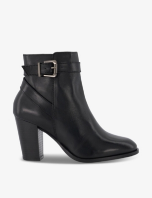 DUNE Philippa buckle embellished block heel leather ankle boots