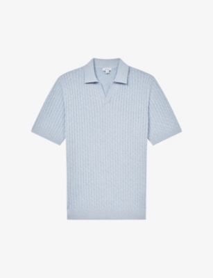 REISS Federico cable knit cotton blend polo shirt Selfridges