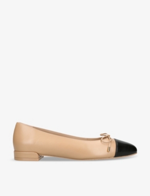 STUART WEITZMAN Sleek bow embroidered leather ballet flats