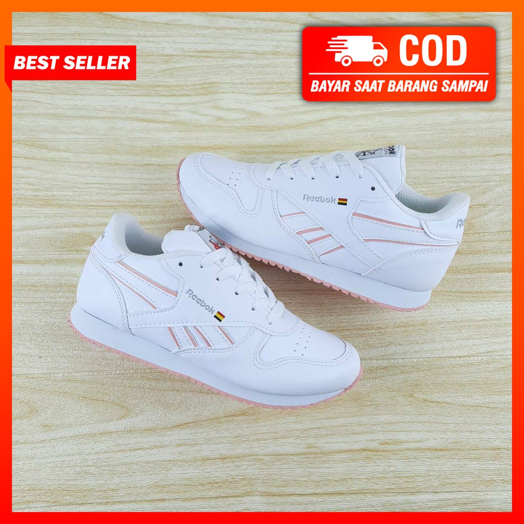 Sepatu sport reebok terbaru clearance, Jual SEPATU WANITA RUNNING REEBOK CLASSIC PUTIH PINK MUDA SNEAKERS clearance