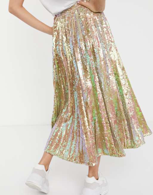 ASOS DESIGN sequin pleated midi skirt ASOS