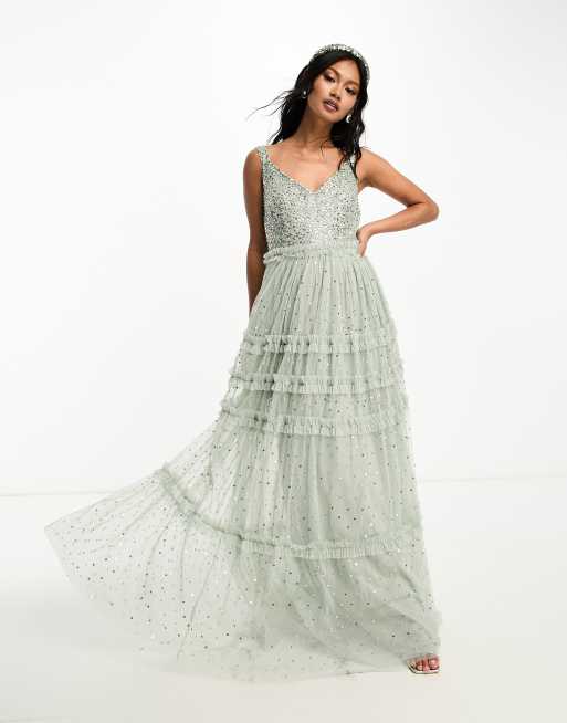 Maya Bridesmaid maxi tulle dress with tonal delicate sequin and