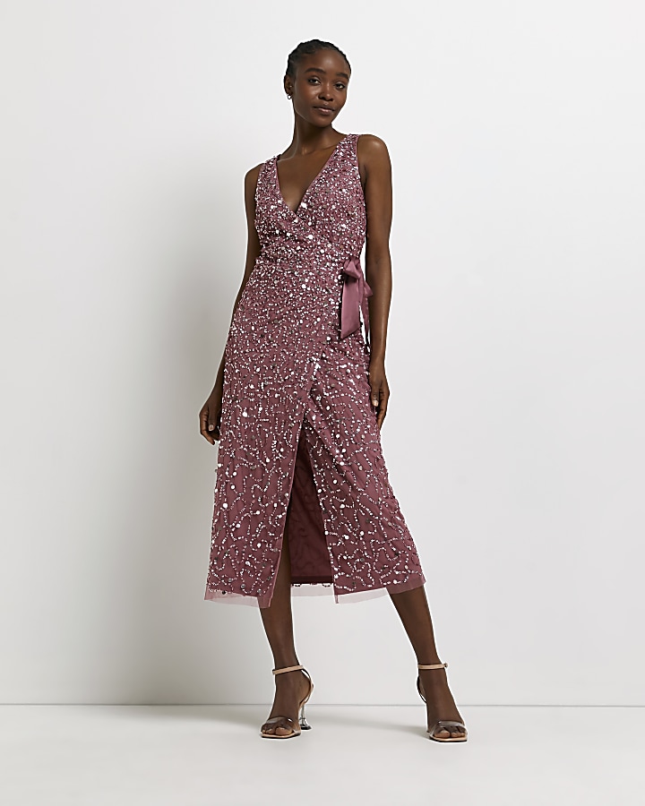 Dresses Wrap Style Sequin Midi Dress Goddiva
