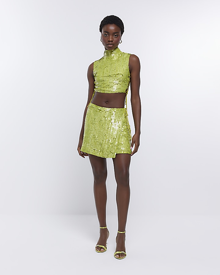 Sequin wrap mini skirt clearance, Green sequin wrap mini skirt curated on LTK clearance