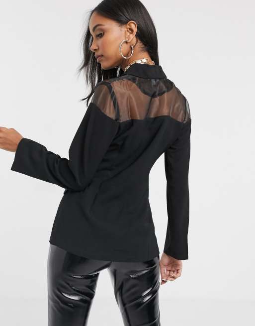 Black Organza Sheer Blazer Coats Jackets PrettyLittleThing