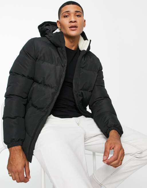Threadbare puffer jacket with sherpa lined collar and detachable