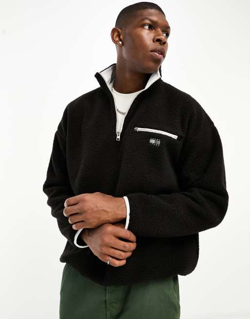 Tommy Jeans oversize 1 2 zip sherpa jumper in black ASOS