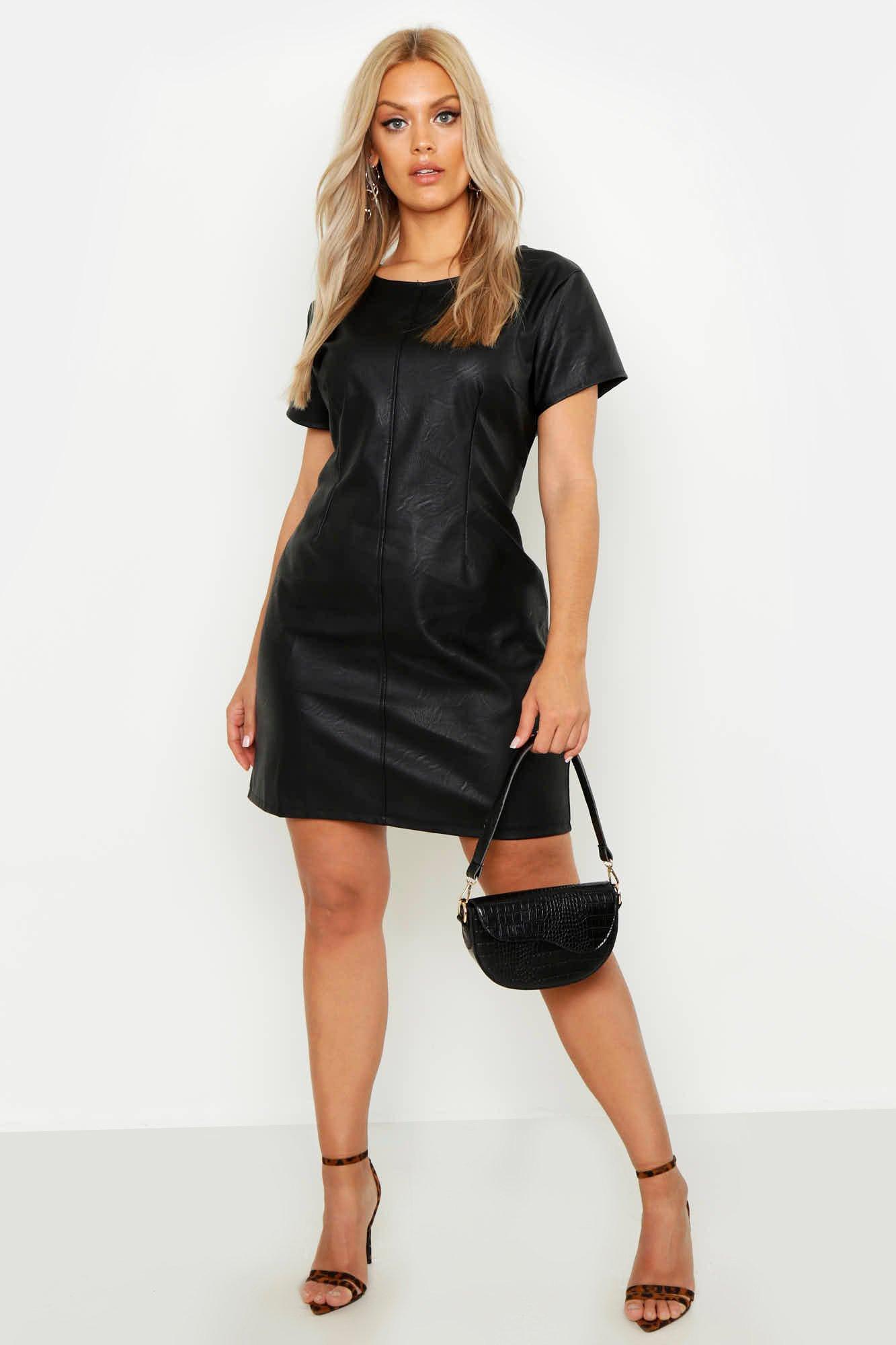 Women s Plus PU Cap Sleeve Shift Dress Boohoo UK