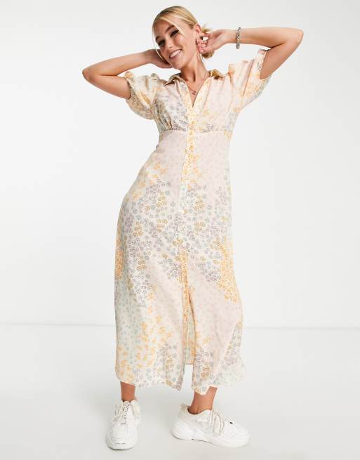 ASOS DESIGN button front midi shirt tea dress in mix scale floral