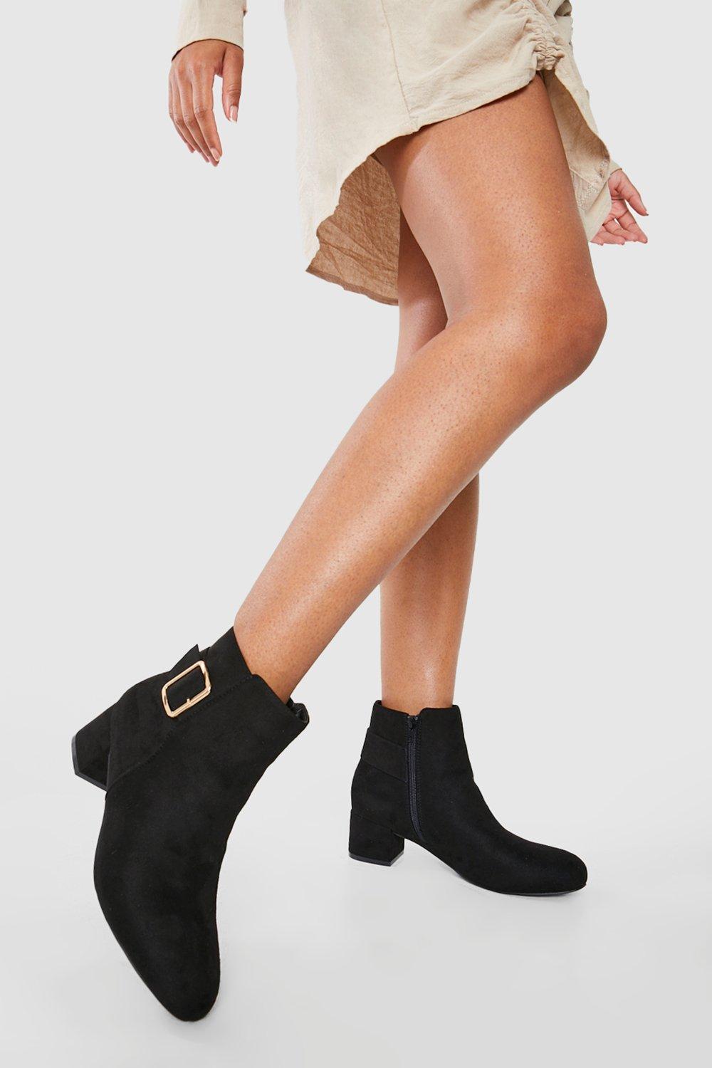 Wide Fit Buckle Detail Block Heel Ankle Boots Boohoo UK