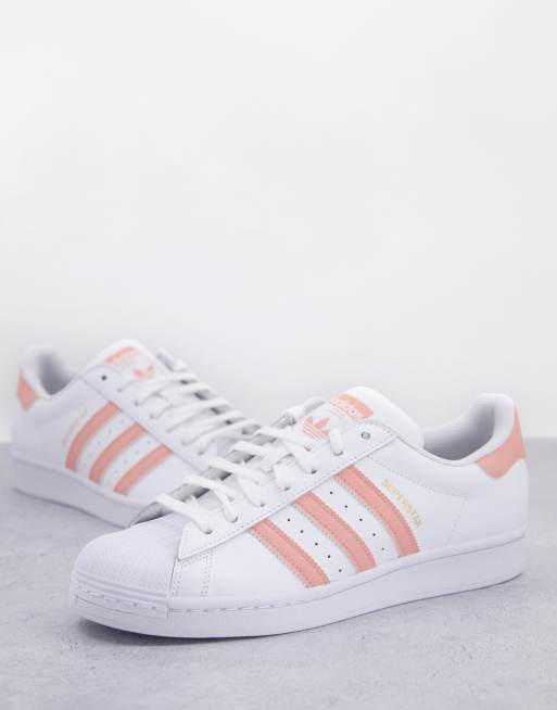 adidas Originals Superstar sneakers in white with pink stripes ASOS