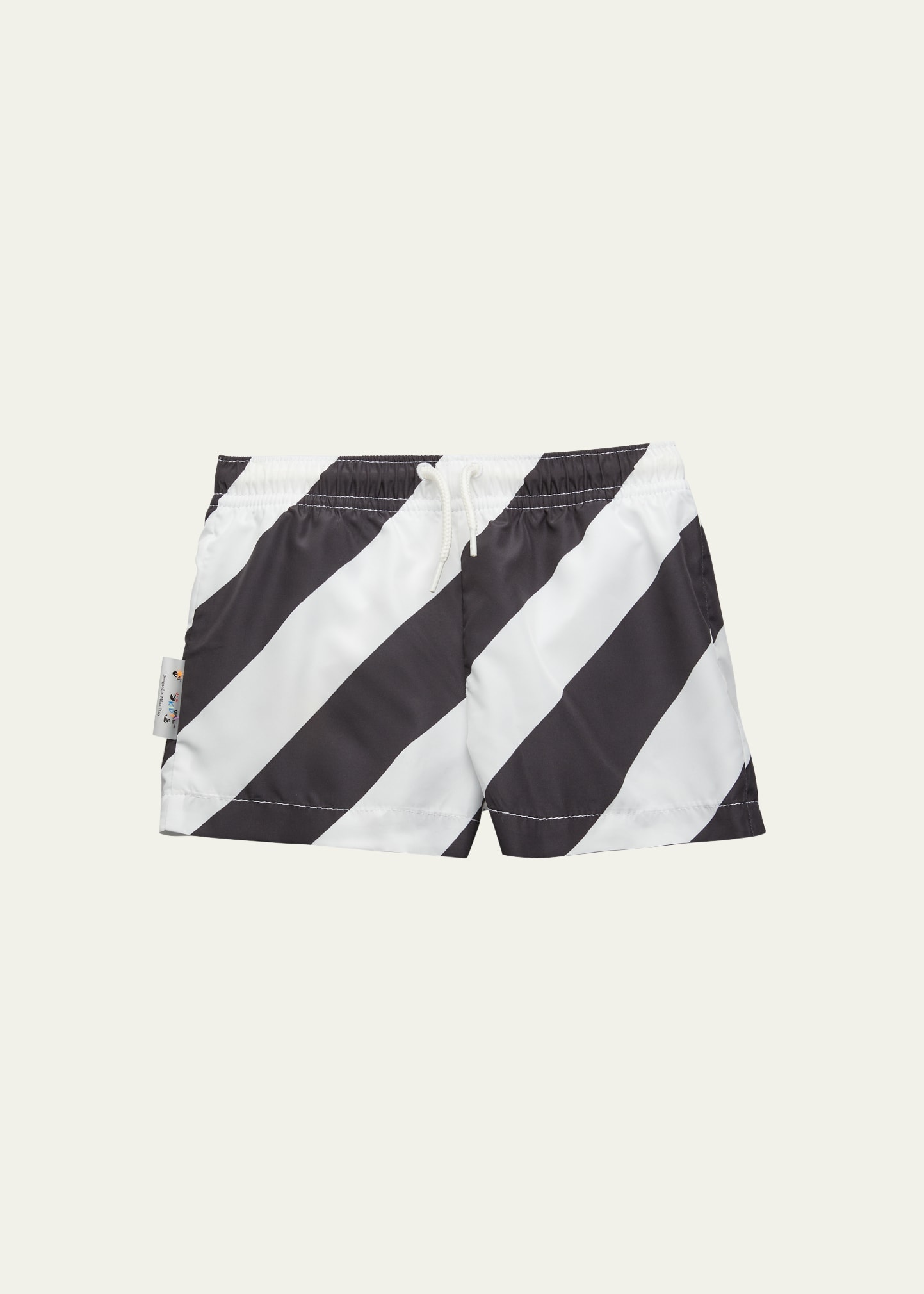 Off White Boy s Diagonal Striped Swim Shorts Size 3M 36M