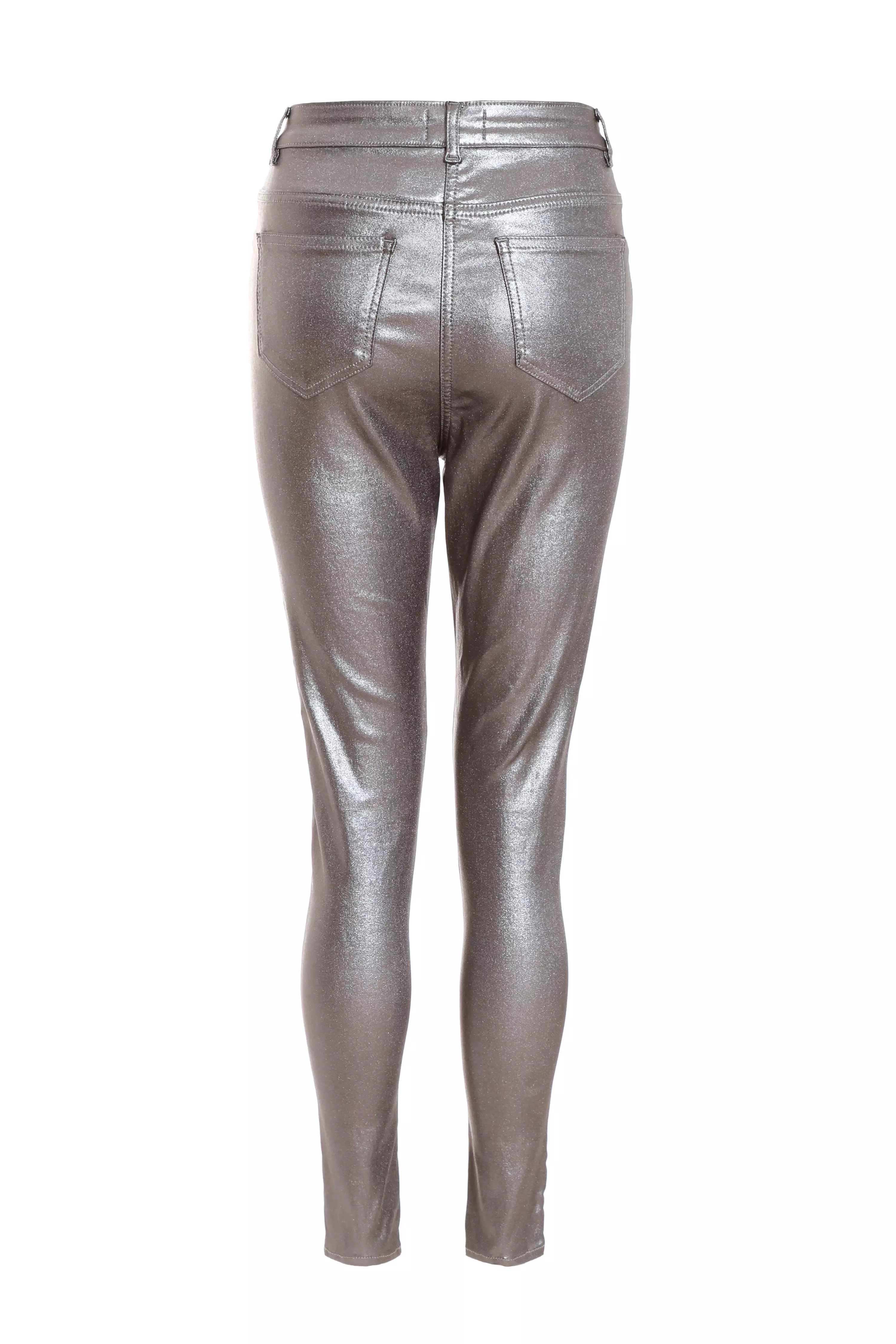 Silver Faux Leather Skinny Jeans QUIZ Clothing