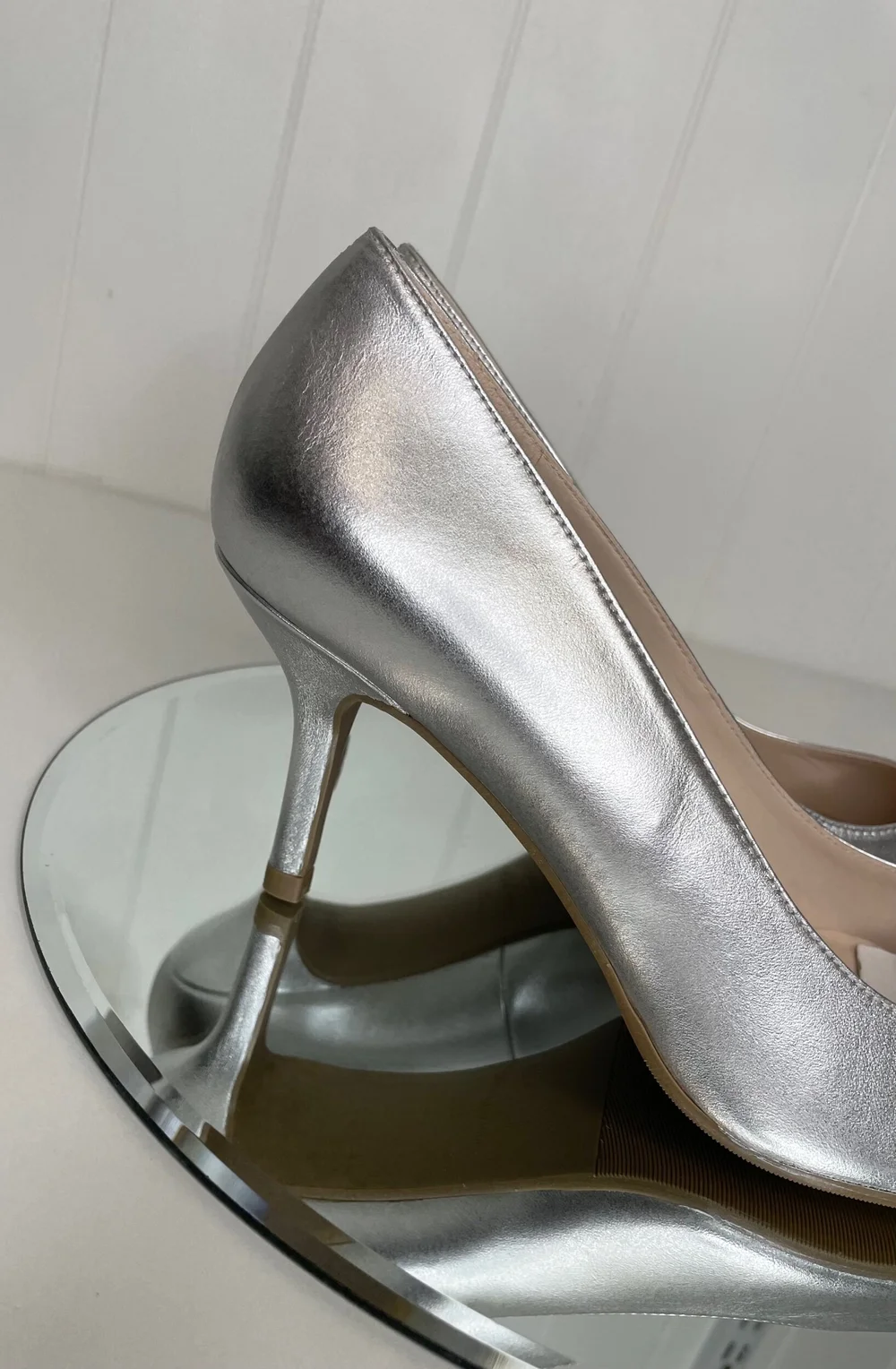 Silver Metallic Low Heel High Heels with Pretty Bow Detail