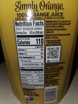 Simply orange juice nutrition facts clearance, Simply Orange Pulp Free Juice 52 Fl Oz Target clearance