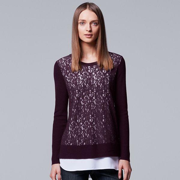Women s Simply Vera Vera Wang Mock Layer Lace Sweater