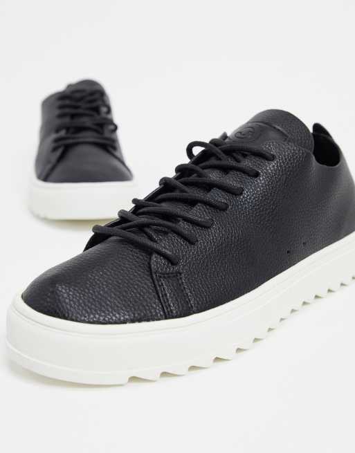 Pull Bear Sneakers nere e bianche con suola a denti di squalo ASOS