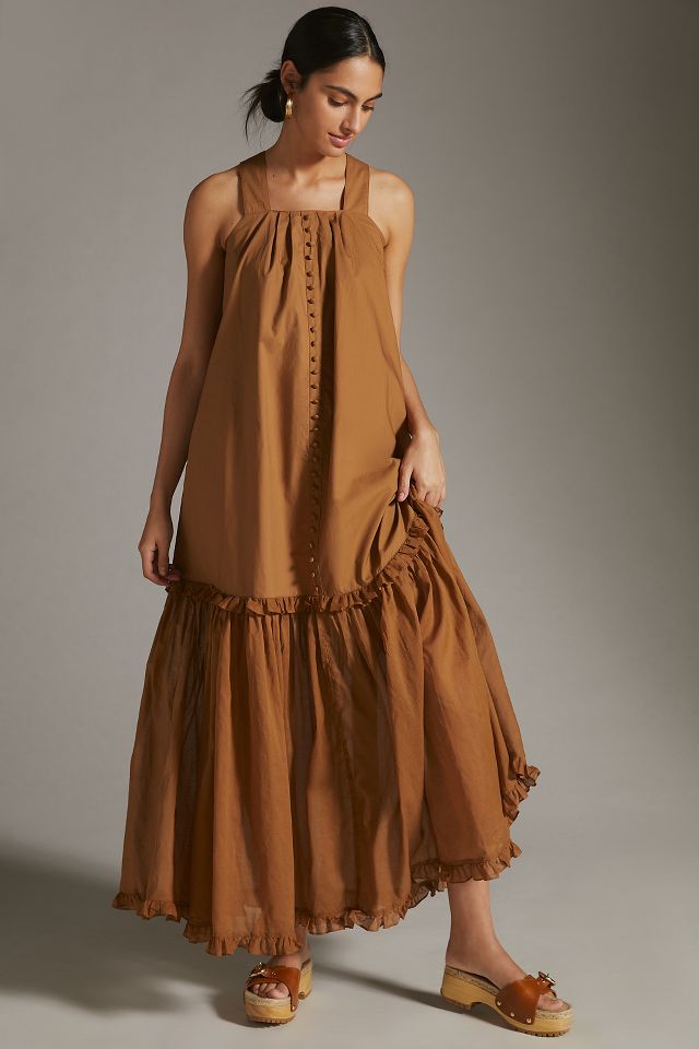 Joslin Square Neck Button Front Maxi Dress Anthropologie