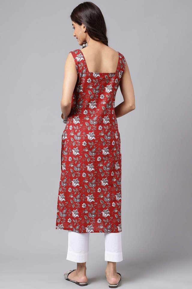 Buy JANASYA Botanical Cotton Square Neck Women s Straight Kurta