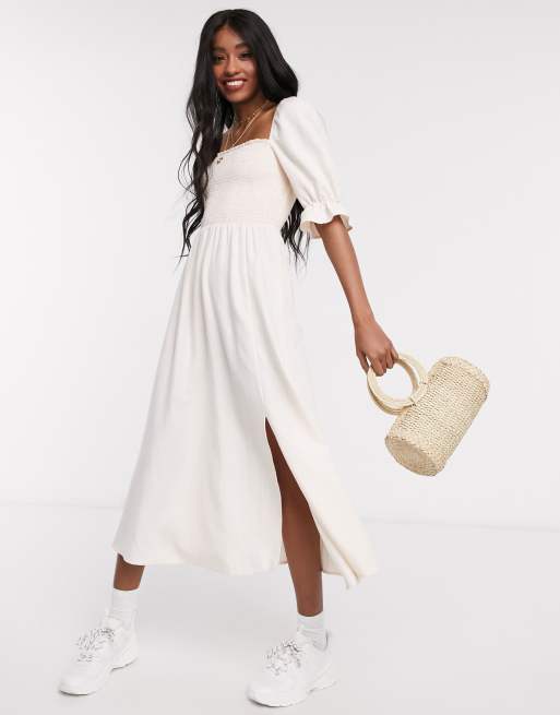 Square neck shirred dress clearance, New Look shirred square neck midi dress in pale pink ASOS clearance