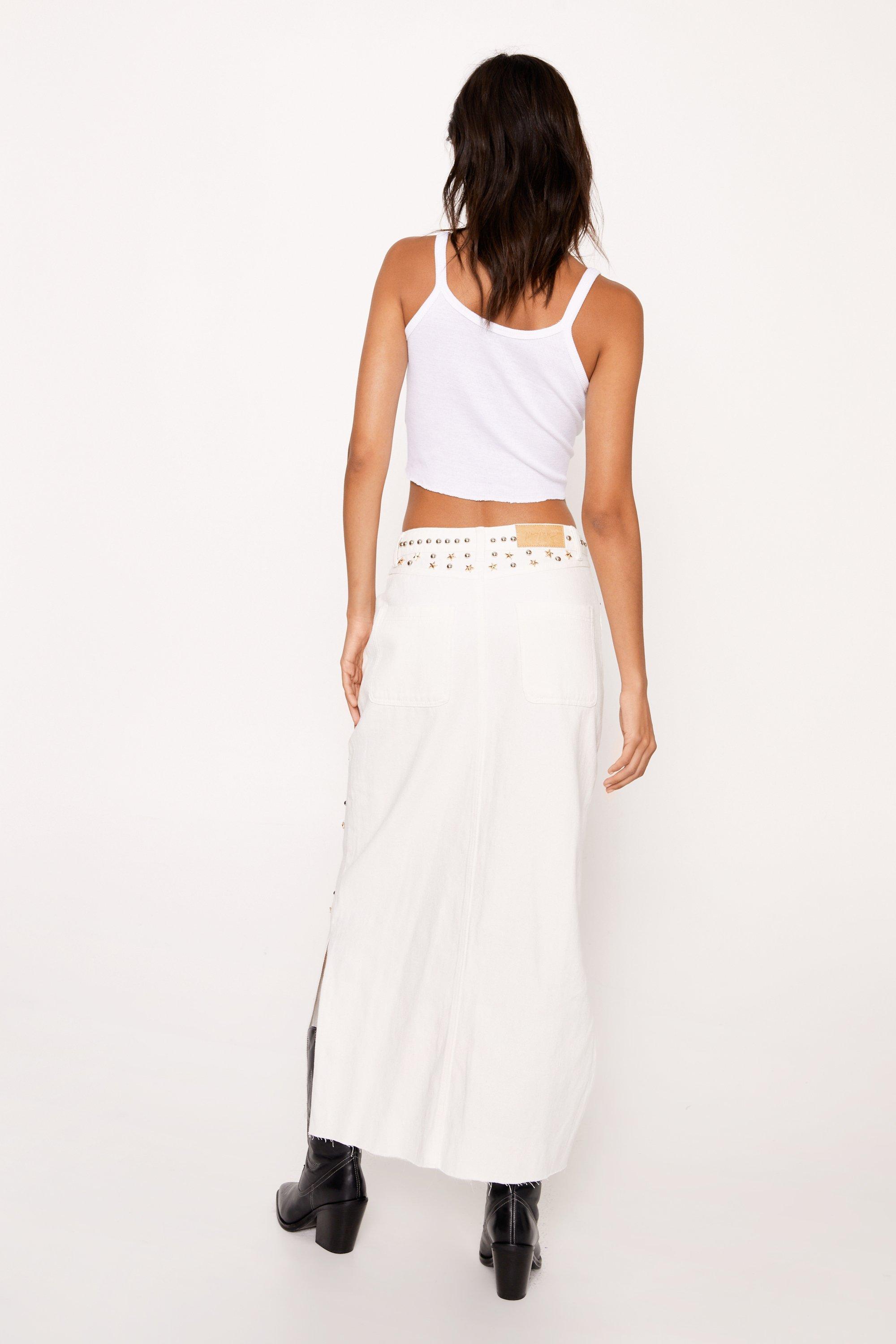 Star embellished skirt clearance, Star Embellished Denim Maxi Skirt Nasty Gal clearance