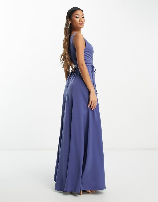 ASOS DESIGN Bridesmaid satin wrap maxi dress with tie detail in