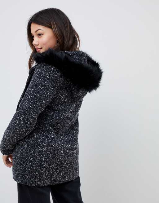 Stella morgan parka coat clearance, Stella Morgan Boucle Coat With Faux Fur Trim ASOS clearance