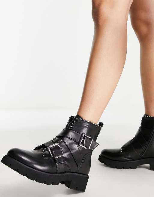 Steve Madden Hoofy ankle boots in black leather ASOS